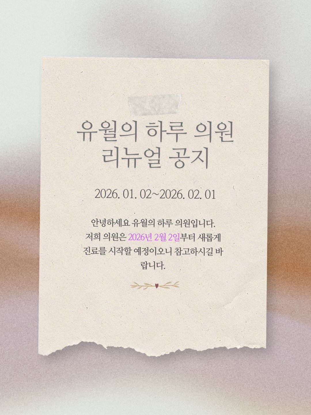 상호명: 유월의하루 의원 사업자등록번호 : 772-41-01543